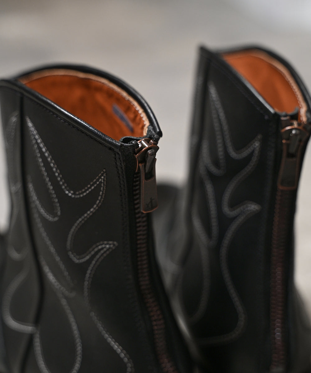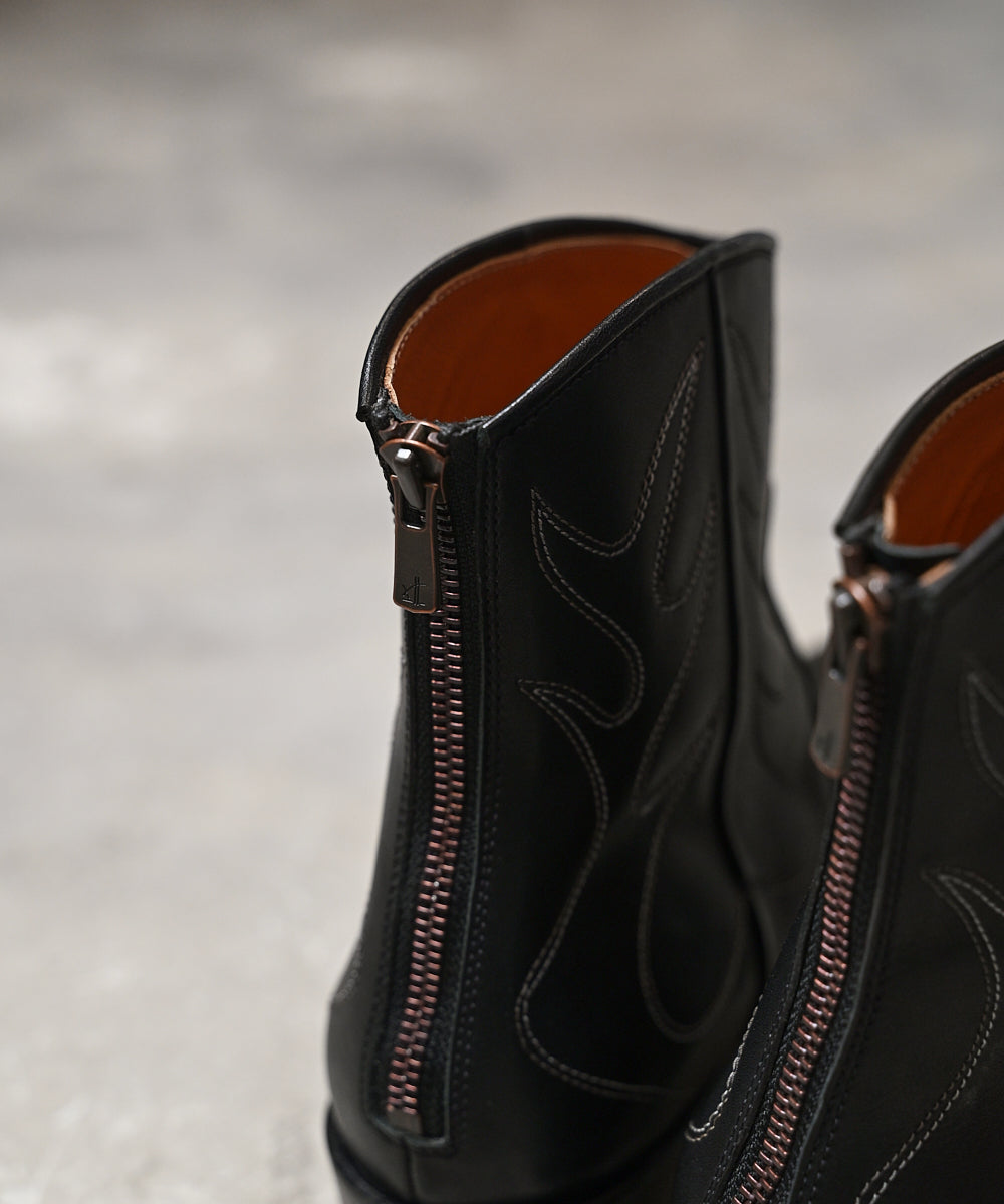ヴィンテージウエスタンブーツを現代仕様にアップデートしたバックジップ仕様のブーツ。