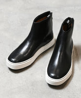 レザーシューズ同様の製法でレザー面を広く設定したスニーカーブーツ。アッパーには肉厚で銀面の美しい上質な牛オイルキップレザーを使用し、履く度にドレープ感の出る味のある印象に。