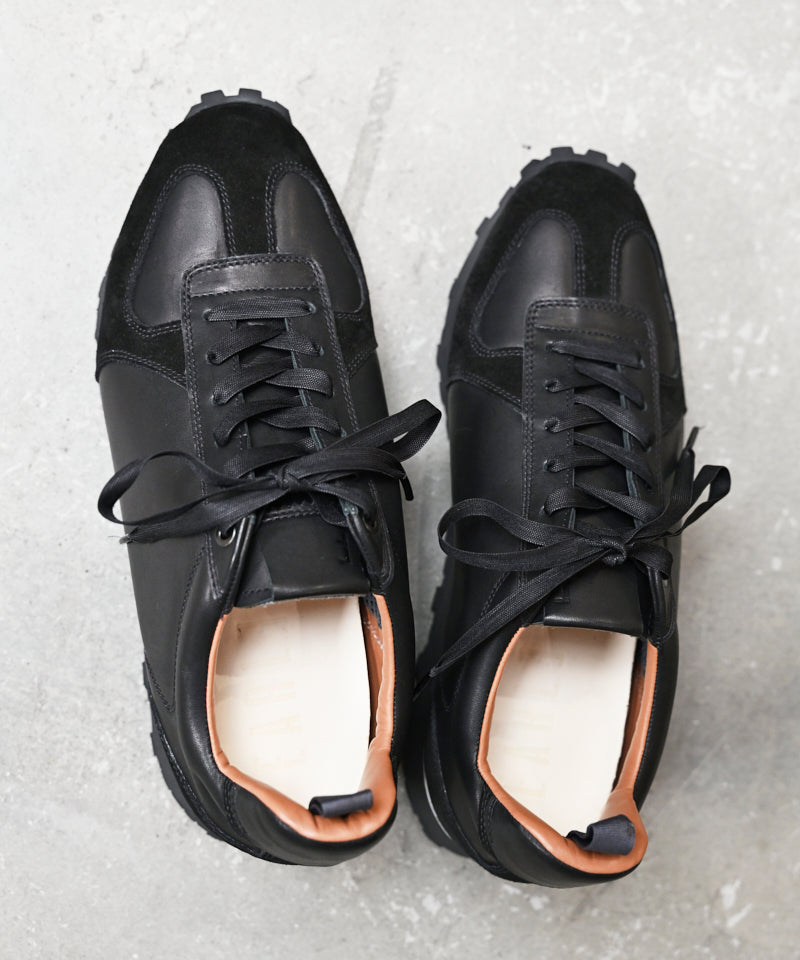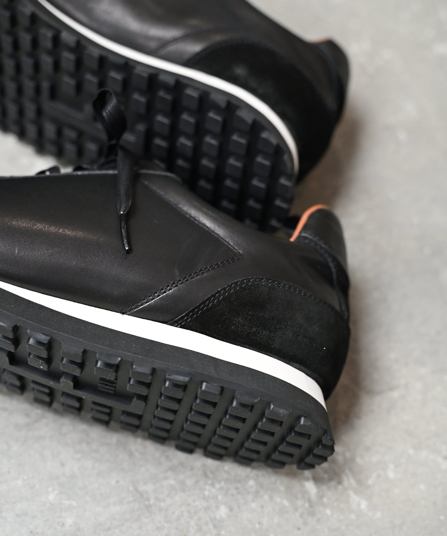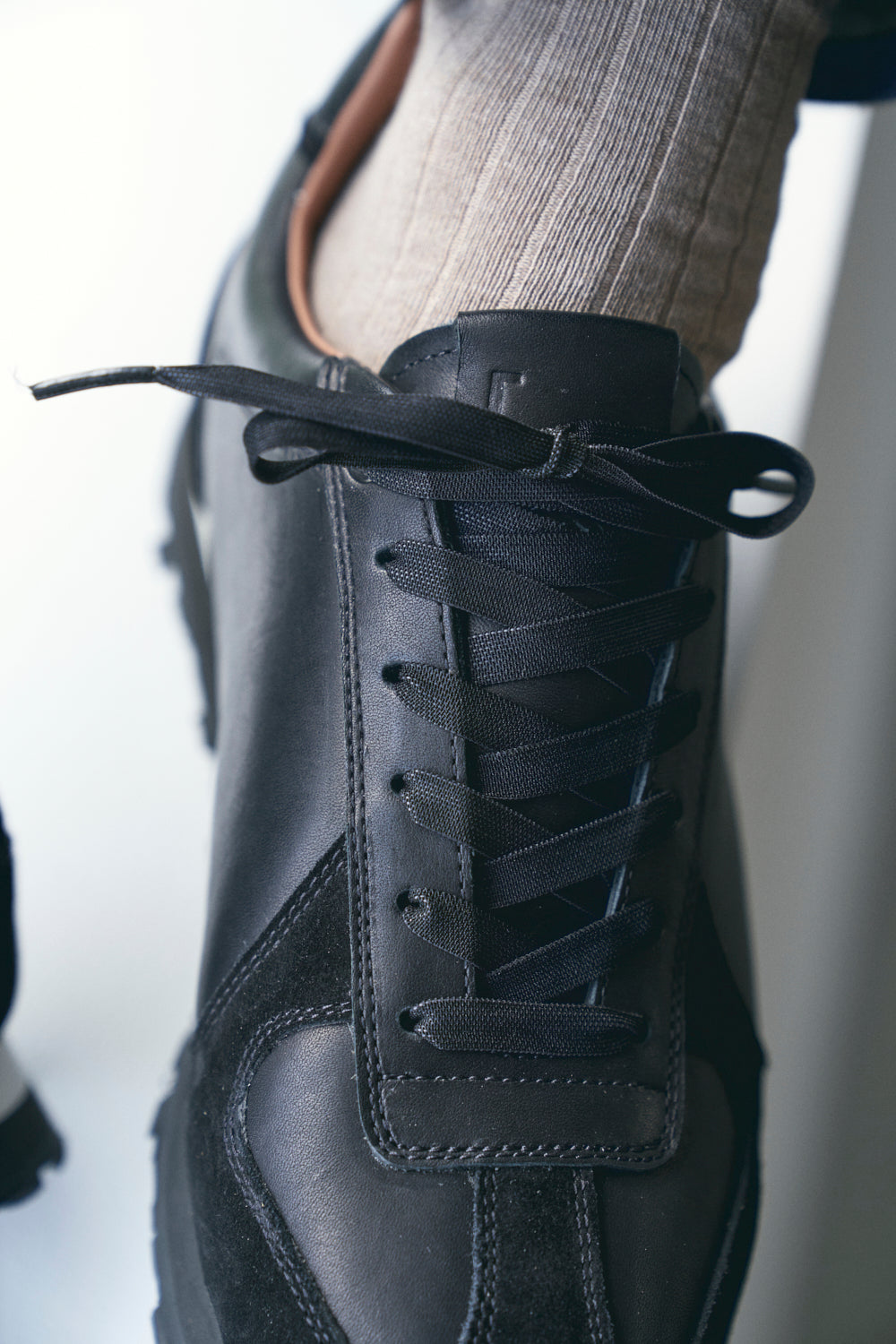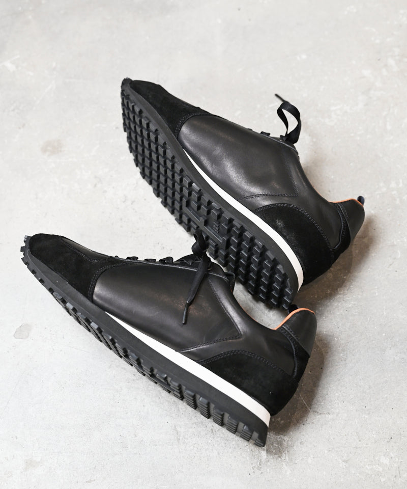 70's のジャーマントレーナーをベースに、 芯材や裏材料を極力省き軽い作りで派生させた新モデルのランナースニーカー。