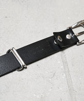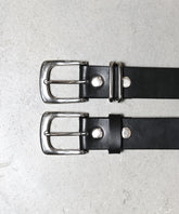 ベルトループデザインを金具と革の 2 タイプ変更可能で、デニムにも最適な33mm幅のポーランド産インポートレザーを使用した本革ベルト。
